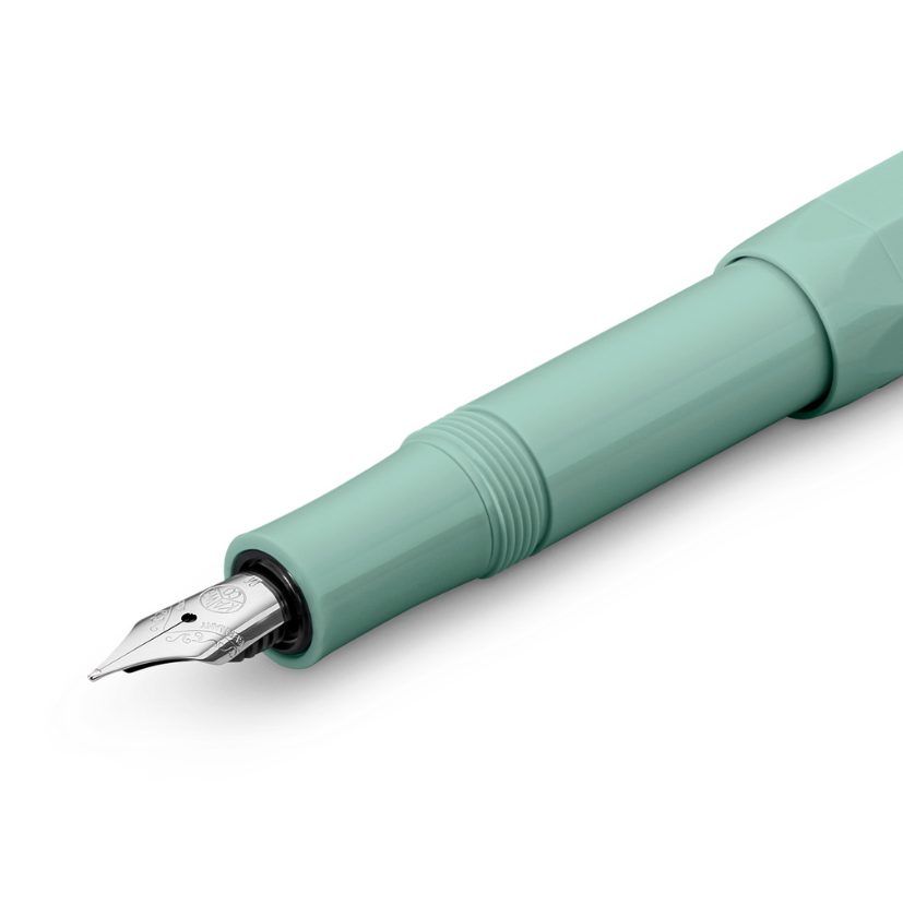 Kaweco Collection Fountain Pen Smooth Sage สีเขียว พาสเทล สุดละมุน ที่เป็นเทรนด์กันต่อเนื่องมาตลอด แถมยังเป็นสีที่ช่วยให้รู้สึกถึงพลังงานด้านบวกและความสงบอีกด้วย รับประกันได้เป็นอย่างดีกับอะไหล่และนิปสีเงินที่มีลวดลายยูนีค แตกต่างจากใคร