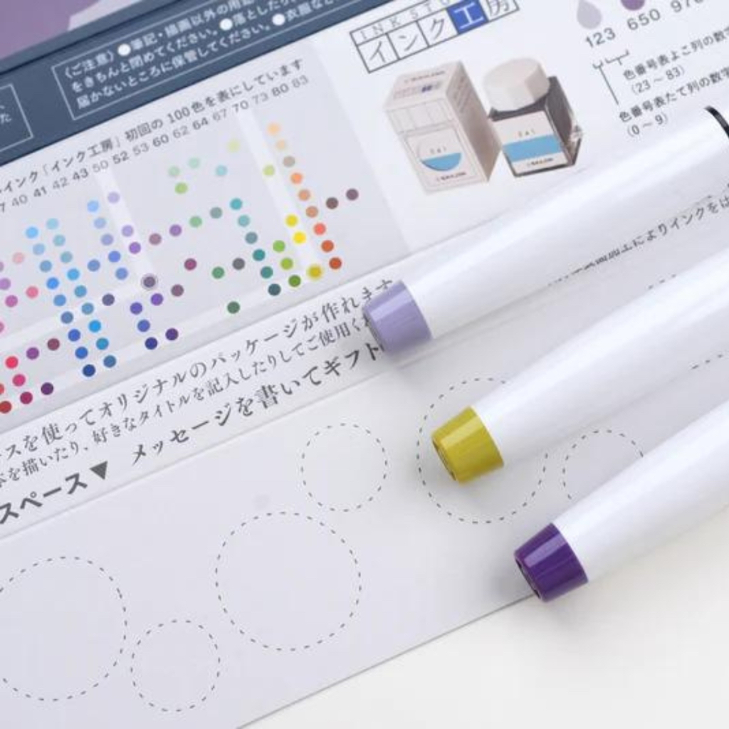 ในชุดประกอบไปด้วยปากกา 3 แท่ง 3 สี (ไม่สามารถเลือกสีในชุดเองได้) ในปากกา 1 ด้ามมี 2 หัวคือหัวพู่กันและหัวเขียน